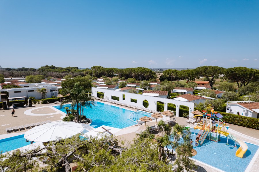 48 appartamenti in formula residence, tutti al piano terra e dotati di ingresso indipendente, aria condizionata autonoma, veranda esterna, piccolo giardino, angolo cottura e servizi con doccia. Sono disponibili nelle seguenti tipologie: Bilocali, di dimensioni contenute, fino a 4 posti letto (massima occupazione 3 adulti + 1 bambino fino a 14 anni), con ingresso che si apre direttamente sul soggiorno con angolo cottura attrezzato e divano letto doppio estraibile o a castello e camera matrimoniale, ampia veranda e angolo cottura esterno; Trilocali, fino a 6 posti letto, con ingresso che si apre direttamente sul soggiorno con angolo cottura attrezzato e divano letto doppio estraibile, 2 camere matrimoniali, ampia veranda e angolo cottura esterno. Disponibilità di appartamento trilocale per persone con disabilità.