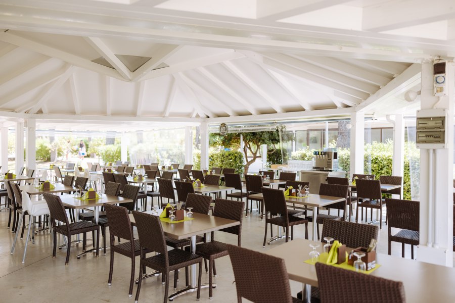 Ristorante a buffet con sala climatizzata e veranda all’aperto, 2 bar di cui uno in piscina.