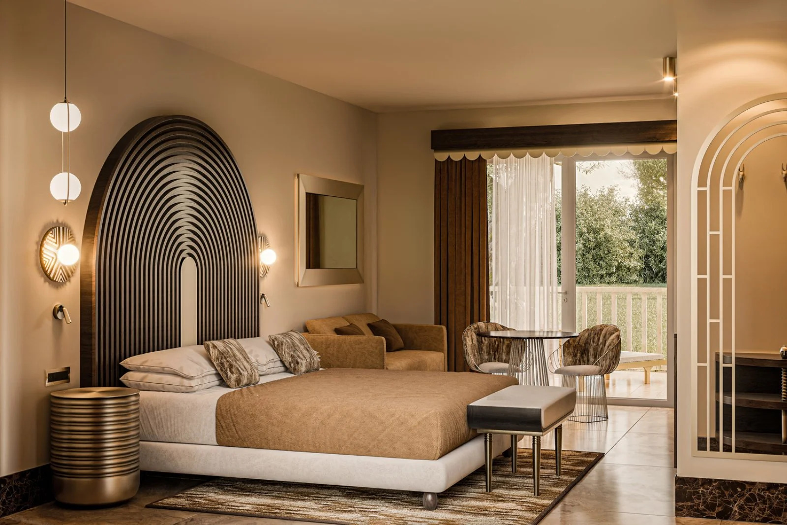 21/46 mq al piano terra o al primo piano. Queste stupende ed esclusive camere, disposte nella rinnovata “Corte Deluxe”, sono caratterizzate da un totale ammodernamento che rende omaggio agli iconici archi del Resort e richiamano, nei dettagli, l’epoca nuragica sarda. Preziosi pavimenti in marmo di Orosei, mobili dal design unico, arricchito da accessori manifatturieri in ottone, essenze pregiate di wengé e frassino, sono alcuni dei plus che, assieme a una TV 4K 50” e all’ulteriore riassetto serale, rendono il soggiorno ancora più esclusivo. Includono nei loro servizi accappatoi, bollitore con kit per infusi e caffè solubile e patio o terrazzo arredati con scenografiche poltrone pavone, è riservata una postazione in spiaggia con ombrellone e 2 lettini in 2a fila. Alcune camere deluxe al piano terra possono ospitare 3 e 4 letto (su richiesta).