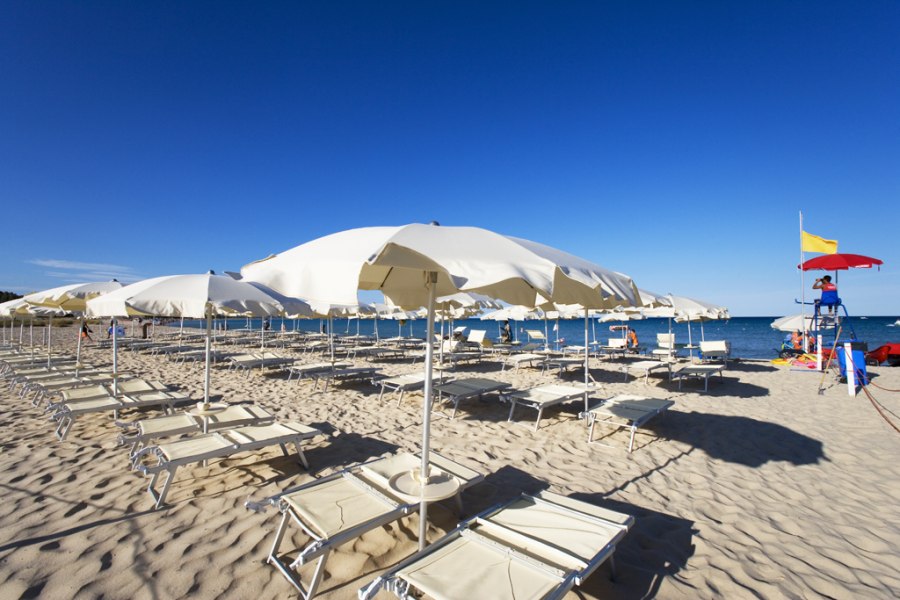 Una delle più belle spiagge di Costa Rei con vista sul rinomato “Scoglio di Peppino”, dista circa 600 metri dalla struttura, ed è raggiungibile a piedi con una piacevole passeggiata o golf car con servizio continuativo (con breve pausa pomeridiana). Di sabbia bianca e fine, con un mare dolcemente digradante, è attrezzata con ombrelloni e lettini e dotata di chiosco bar, servizi igienici e docce. Fornitura teli mare con cambio infrasettimanale. A disposizione una piscina.