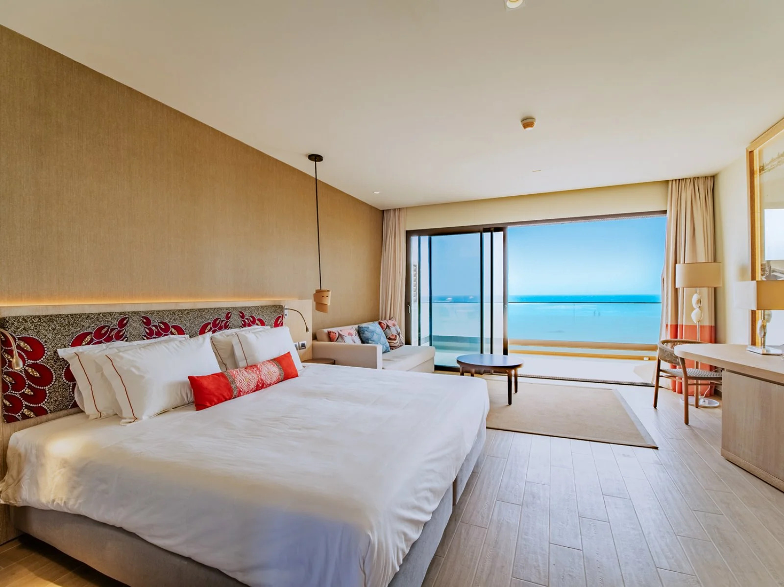 572 camere tutte arredate con eleganza e stile sono dotate di servizi privati, terrazzo o balcone, TV satellitare (al momento non disponibili), climatizzazione, asciugacapelli, minifrigo, cassetta di sicurezza e set per tè e caffè. A disposizione diverse tipologie tra cui standard deluxe vista giardino o vista mare di 36 m2 (massima occupazione 3 adulti) e junior suite vista giardino (massima occupazione 2 adulti e 2 bambini) o vista mare (massima occupazione 2 adulti e 1 bambino), entrambe di 45 m2 . Sono presenti camere deluxe swim up, vista giardino o mare, di 36 m2 con massima occupazione 3 adulti.