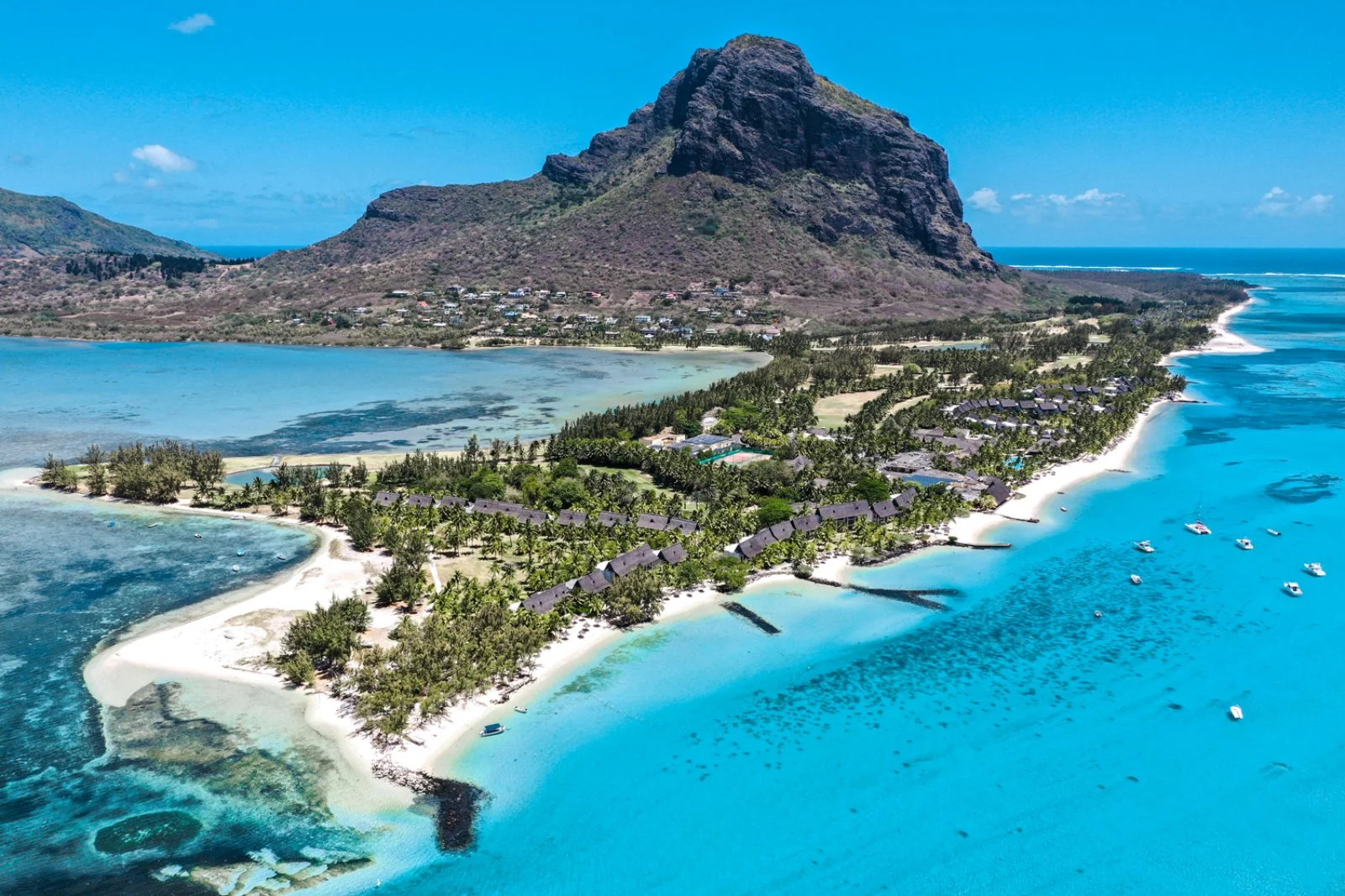 Situato sulla costa sud ovest dell'isola, lungo la scenografica spiaggia della penisola di Le Morne, a poco più di un'ora d'auto dall' aeroporto internazionale.