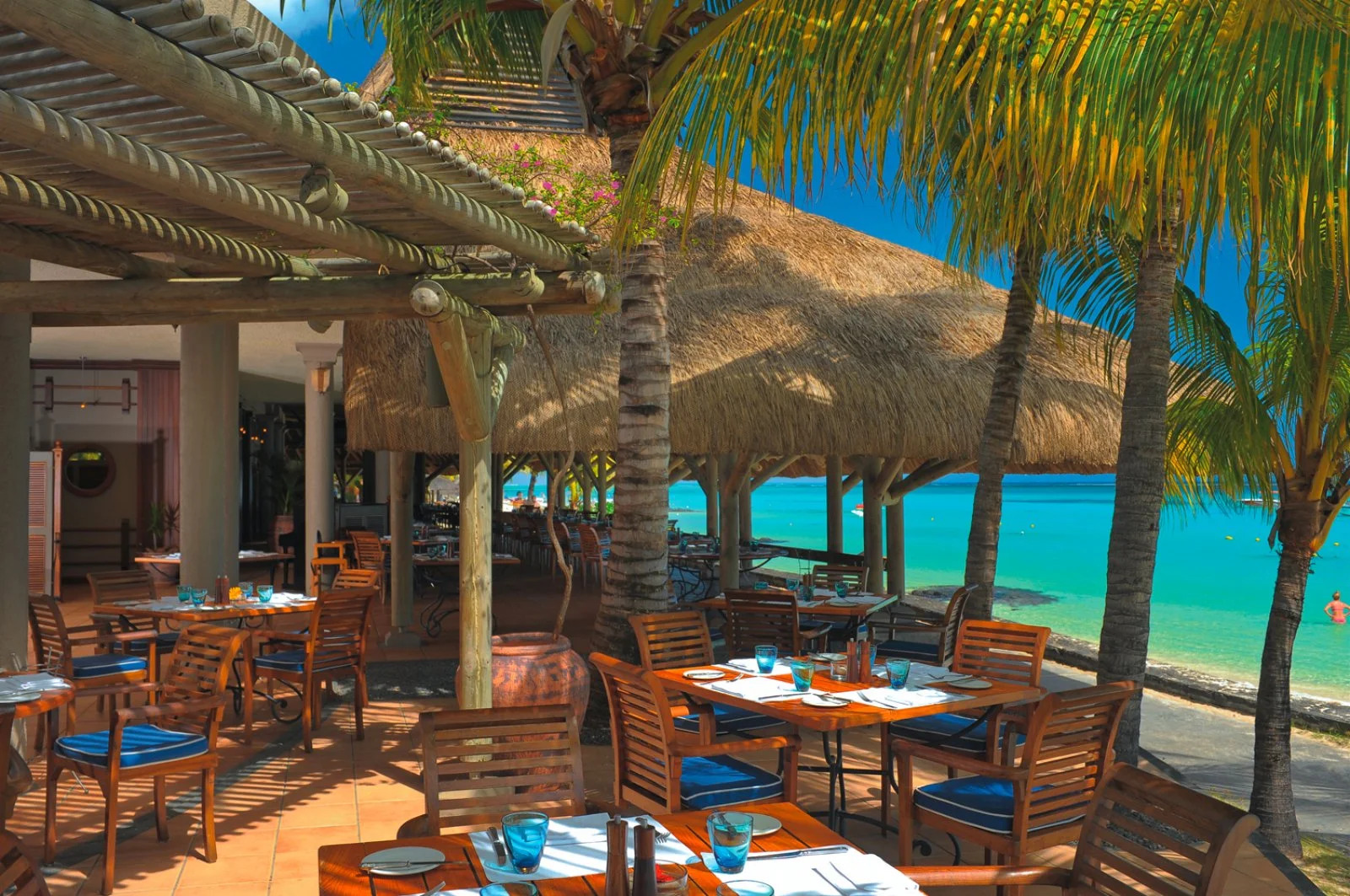 L’elevato livello della gastronomia soddisfa le aspettative dei palati più esigenti con 4 ristoranti che si avvalgono dell’esperienza di talentuosi chef. Ciascuno ha stile e atmosfera personalizzati. “Le Brabant” è il ristorante principale, gode di una posizione privilegiata, affacciato sulla piscina e offre buffet a tema e prelibatezze preparate al momento. Il ristorante “Blue Marlin”, aperto per pranzo e cena, che propone, in un’atmosfera calda ed elegante, un delizioso viaggio gastronomico tra i sapori del mare e della terra. "Zest", aperto a pranzo e cena, si affaccia direttamente sul mare e incarna lo spirito mediterraneo e le vacanze in stile dolce vita. Il suggestivo "La Ravanne", anch’esso sulla spiaggia, offre la possibilità di poter sperimentare gusti e sapori della cucina locale mauriziana. A disposizione degli ospiti quattro bar. Salgono a otto le proposte gastronomiche grazie alla possibilità di accedere ai quattro ristoranti dell’adiacente resort Dinarobin Beachcomber Golf Resort & Spa. Il trattamento base è in Pernottamento e Prima Colazione, con supplemento possibilità di Mezza Pensione e All Inclusive.